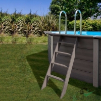 Kit piscina completo in legno composito, materiale di ultima generazione formato da una mescola di resina e legno che non marcisce, non si scheggia e non ha bisogno di manutenzione.